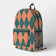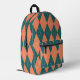 Preppy Orange Green Argyle Print Monogram Initials Printed Backpack