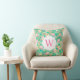 Preppy Palm Beach Print Green Oranges Monogram Cushion