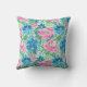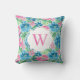 Preppy Palm Beach Print Pink Blue Flowers Monogram Cushion