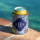Preppy Patchwork Madras Navy Quatrefoil Monogram Can Cooler
