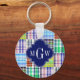 Preppy Patchwork Madras Navy Quatrefoil Monogram Key Ring