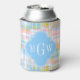 Preppy Patchwork Madras Pastel Quatrefoil Initials Can Cooler