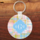 Preppy Patchwork Madras Pastel Quatrefoil Initials Key Ring