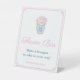 Preppy Peony Pink Blue Flower Bar Pedestal Sign