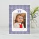 Preppy Pink and Blue Plaid Chinoiserie Bow Holiday Card