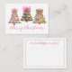 This cute tiny note card features three preppy Christmas trees in girly shades of pink and green with fun bows. Personalize the back with your choice of special holiday message or name.