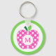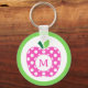 Preppy Pink and Green Polka Dot Apple Monogram Key Ring