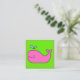 This cute personalised small note card features a preppy whale in shades of pink and blue on bright green with a border of bright pink. Personalise with your choice of name or special text on the back. Great for any occasion.