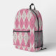 Preppy Pink Argyle Print Monogram Initials Printed Backpack