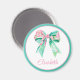 This cute round magnet features a preppy pink and turquoise floral bow with a matching pink and turquoise border. Personalise with your choice of name or special text. Fun for personalised gift bags and party favours.