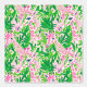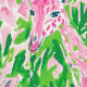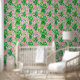 The wallpaper features a whimsical preppy pattern with pink and green giraffes elegantly intertwined with vibrant, lush green leaves. The giraffes stand tall and playful against the pink background, their long necks stretching amid clusters of greenery, which add a pop of colour and a touch of nature’s charm. The overall design exudes a fun, lively vibe that would brighten any space, making it a perfect decorative piece for an office, living room, or bedroom.