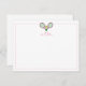 Cute Preppy Hot Pink and green tennis rackets with pink border 'a note from' flat thank you note card.