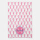 Preppy Pink Lobsters on White With Navy Monogram Tea Towel