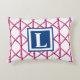 Preppy Pink Navy Trellis Bamboo Pattern Monogram Decorative Cushion