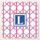 Preppy Pink Navy Trellis Bamboo Pattern Monogram Square Paper Coaster