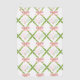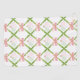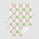 I created this golf towel to be used for pickleball players!! This pickleball towel has a green trellis pattern with pink bows and two gingham pickleball paddles criss-crossed inside the trellis. Colours used include  green, blush pink and and tan.