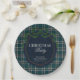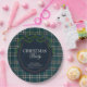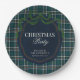 Preppy Plaid Christmas Party Green Navy Tartan Paper Plate