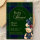 Preppy Polo Teddy Bear Classic Fromal Luxury Girl Baby Shower Green Navy Invitation