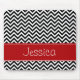 A trendy black and red chevron pattern is featured on this custom mousepad. Modern and cute -- Easily personalise with your name!