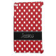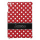 A trendy red and white polka dot design with a black stripe is featured on this iPad Mini case. Preppy and cute -- Easily personalise with your name!
