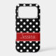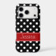 A preppy red and black polka dot iPhone case. Easily personalize with your name!