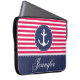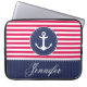 Preppy Red Navy Nautical Anchor Custom Name Laptop Sleeve
