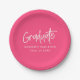 Add a special touch to your graduation party with personalized graduation paper plates! The paper plates display "Graduate" in a white handwritten script with a hot pink background or color of your choice. Personalize the hot pink graduation plates by adding the graduate's name and graduation year.
