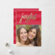 A bright and preppy design featuring tonal preppy red stripes behind a faux gold foil "joyful" in a brush script accented with a preppy stripe backer pattern.