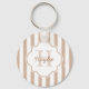 Preppy Tan Painted Stripes Monogram and Name Key Ring