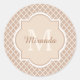 Preppy Tan Quatrefoil Mongogram With Name Classic Round Sticker