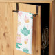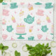 This kitchen towel features whimsical tea party items including an aqua and green tea set with pink cake and cupcakes. Perfect for a spring kitchen refresh. Makes a great Mother's Day gift, housewarming present and gift for a fan of tea.