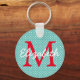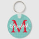 Preppy Teal and Red Polka Dot Monogram Key Ring