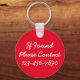 A very preppy monogram polka dot key chain in classic shades of teal, red and white. Personalise the monogram on the front with your name and initial and your choice of special text on the back.