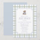 Preppy Teddy Bear Blue and Sage Plaid Baby Shower Invitation