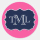 Preppy Three Initial Monogram And Frame Classic Round Sticker