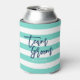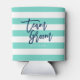 Preppy Turquoise and White Stripes Blue Team Groom Can Cooler