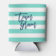 Keep your drink cans cool with this can cooler featuring the words "Team Groom" in blue trendy script against a preppy turquoise and white stripes pattern background. Perfect for weddings and bachelor parties. For other matching items see here https://www.zazzle.com/collections/119250194970828530?rf=238364477188679314