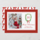 Preppy Watercolor Monogram Wreath Holiday Card, custom photo Christmas card editable text.