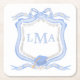 Preppy Wedgewood Monogram Graduation square paper coaster with a place for.a custom monogram