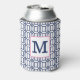 Preppy White Blue Octagon Monogram Initial Can Cooler