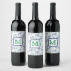 Preppy Zebra Martinis Green Monogram White Wine Label