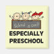 Three stick figure kids hold a writing board that reads "School is Cool!" on this cute Preschool design on preschool T-shirts, hoodies, mugs, cards, stickers, tote bags, and other preschool apparel and gifts.