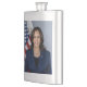 The product is a good size and came exactly as it was pictured. The lid is not attached to the flask, which could be dangerous on drunken nights... The print came out surprisingly well and looks very sharp. Would definitely recommend.