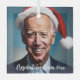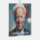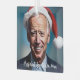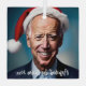 This design features a caricature of Joe Biden wearing a Santa hat on a blue background.