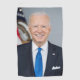 The photograph captures a moment in time during the Presidency Joe Biden the 46th President of the United States. Sunlight streams through a window, casting a warm glow on the figure of an Biden standing confidently in the centre of the frame. Standing tall with arms straight, a gesture that suggests both authority and a hint of casual ease. --- Mr. Biden is dressed impeccably in a dark suit, the crisp fabric contrasting sharply with the clean lines of his white shirt. A blue adds a touch of personality to the ensemble. --- A glimpse of patriotism is evident in the background. An American flag stands proudly on a pole to the man's left, its vibrant colours a subtle counterpoint to the cool blue of the wall behind him. --- Reelection soon to come for President Biden is the focal point of the image. His short white hair frames a kind face, etched with the lines of a life well-lived. A warm smile plays on his lips, conveying a sense of confidence, wisdom, and perhaps a hint of amusement.