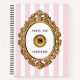 This adorable notebook is perfect for your next brunch, birthday party or bachelorette party. The design features a pink and white striped background with an ornate frame around a doorbell with text that reads "press for champagne." You can change the word champagne to anything your heart desires by clicking "personalise this template."