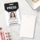 Easily upload your own photo and Bar Code. Custom press badge with photo ID and QR code. Customise the job title, your name and company name to your requirements. Reverse has 'If found return to". Press Pass Photo and Bar Code ID Badge. This template photo and Bar Code are for demonstration purposes only.