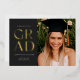 Celebrate your graduation in style with this modern graduation announcement and invitation. It features the word GRAD in a stylish sans serif pressed with foil on the front on a dark background, along with space for a photo. The back of the invitation has space for a second photo as well as room for all of the details of your graduation party.