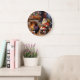 This little Scottie dog, with the Preston clan tartan bow, is listening very closely to the naughty or nice list Santa is reading. This Christmas wall clock will be fun to bring out year after year during the holiday season, counting down the hours! You can change the Merry Christmas greeting to whatever you like!