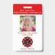 Professional looking pretend firefighter badge for kids. Perfect for role play and Halloween costume. Add child's photo and personalise information.
